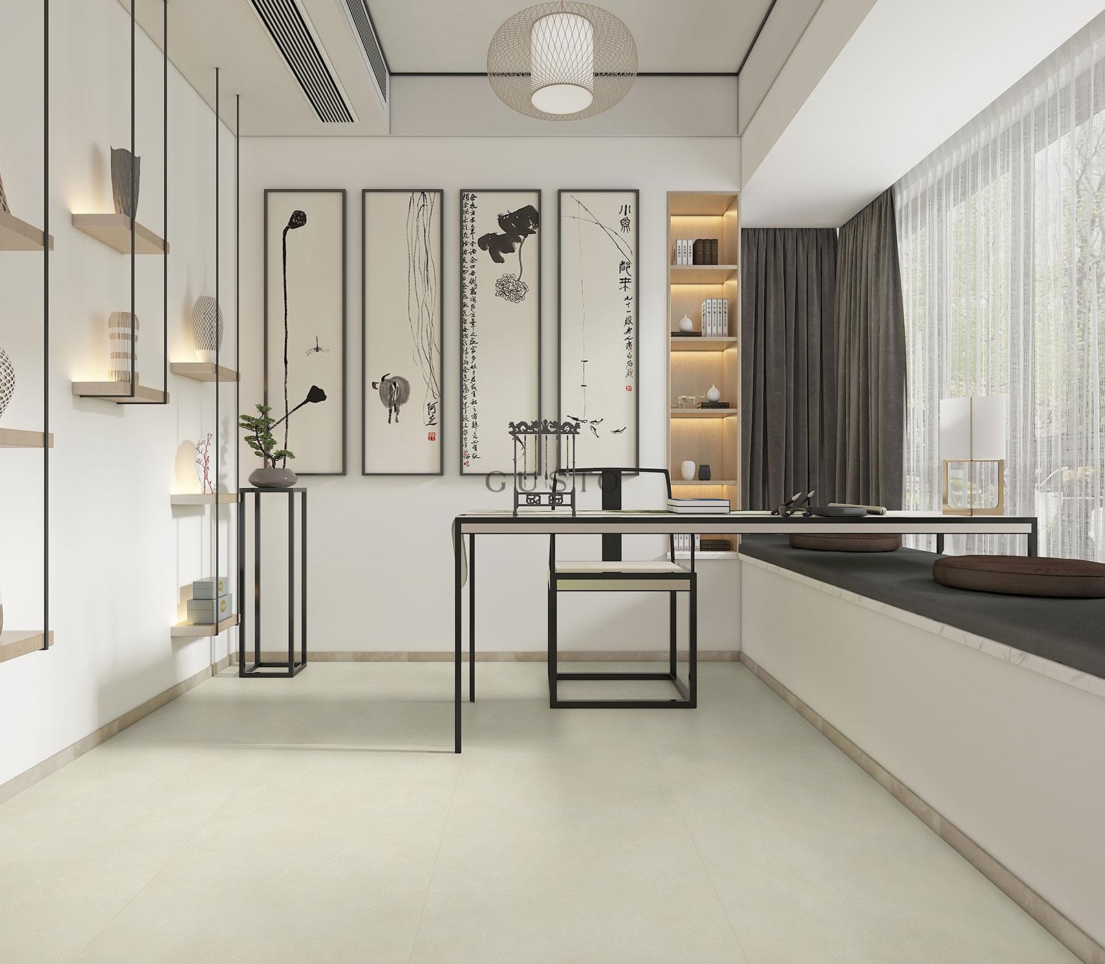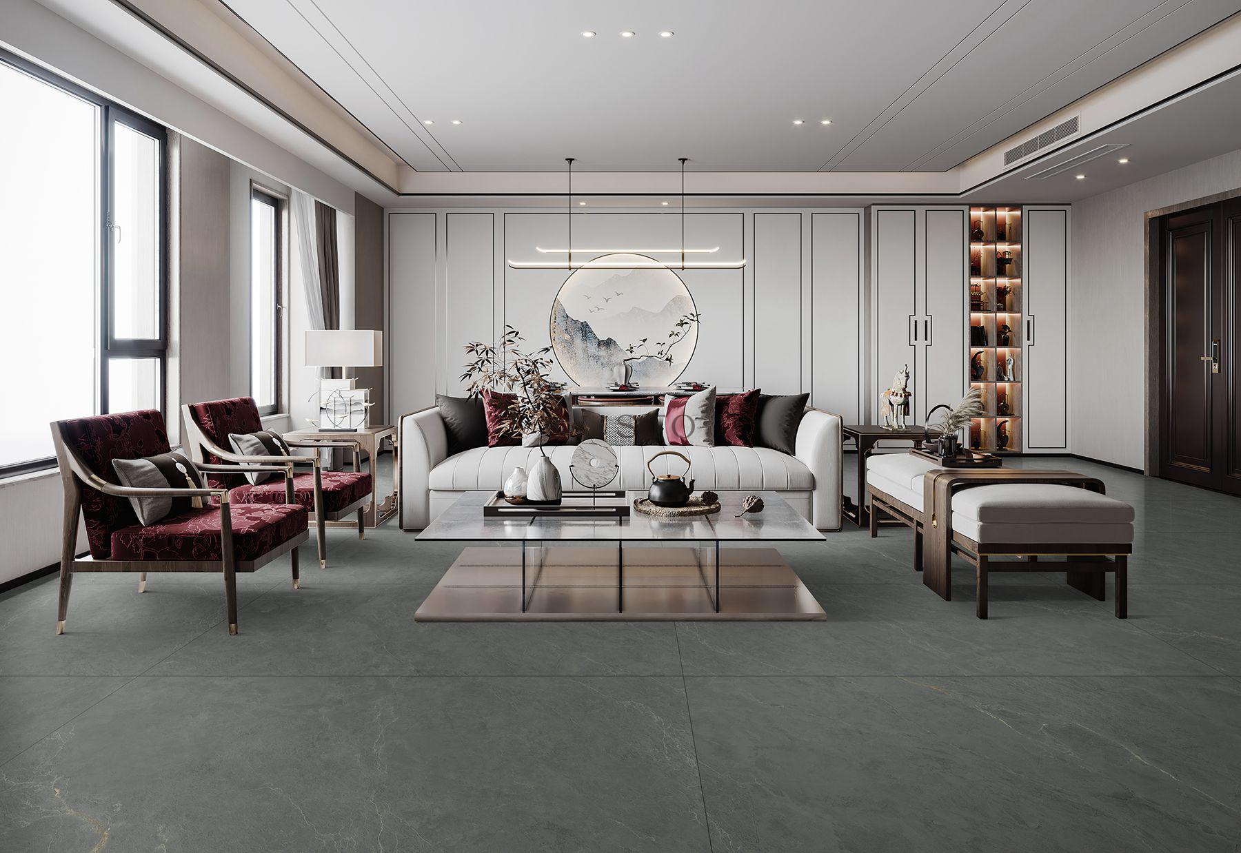 一踏入这个空间,最吸引目光的便是地面与墙面的瓷砖。它们铺贴得平整如镜,光可鉴人,无缝衔接的工艺让整个房间的线条无比流畅。瓷砖本身选用的是低饱和度的哑光灰色系,质感温润高级,不仅耐脏,更在自然光的映照下流露出一种静谧的奢华感。精准的对缝处理让视觉无限延伸,极大地拓宽了空间感,搭配极简风格的家具,共同营造出一个既大气又充满现代格调的生活环境。